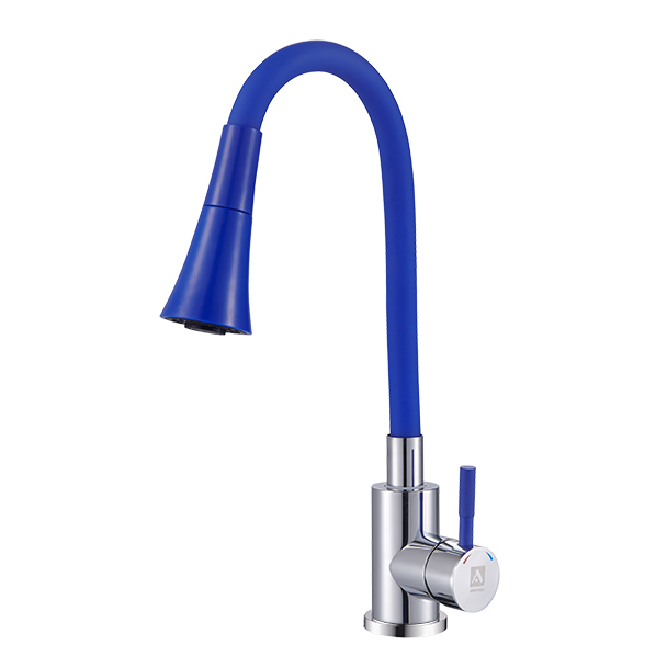 ARGO 3512 SOLID blue Смеситель для кухни набортный, SOLID двухпозиционный, хром/синий, пластичный излив, однорычажный, d-35, нержавеющая сталь, монтаж - гайка, гибкая подводка 50 см