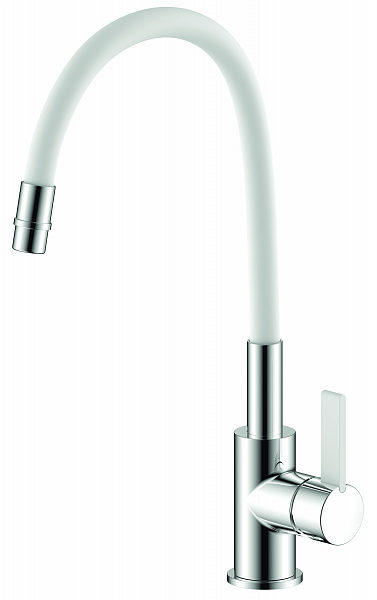 ARGO Смеситель для кухни набортный KLIO white, хром/белый, пластичный излив, однорычажный, d-35 латунь, гибкая подводка 50 см