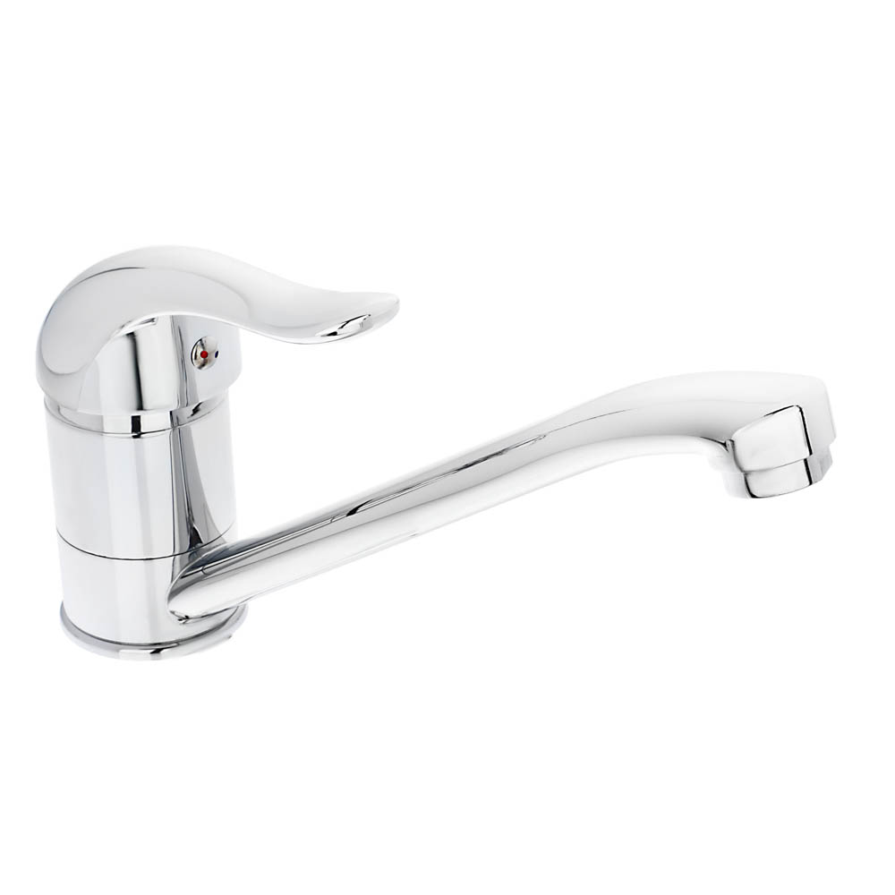 Смеситель для кухни. Низкий прямой излив длиной 25 см: подходит для больших глубоких моек. Однорычажный: поток воды регулируют одной рукой. Керамический картридж 40 мм - дает большой напор воды, плавный ход рычага, меняет напор от легкого поворота рычага. Крепление на шпильке - подходит для монтажа на столешницу. Цинковый: служит недолго, подходит, как временный смеситель. Портится от резких перепадов температуры воды - меняйте плавно!