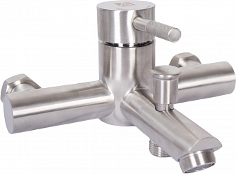 "ARGOTECH" Смеситель для ванны настенный, SOLID однорычажный, d-35 дайвотер штоковый, нержавеющая сталь, с душевой гарнитурой
