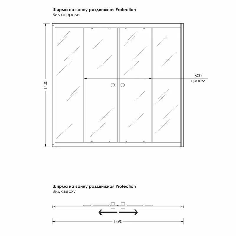 Ширма на ванну раздвижная Protection 149х140х6,5 стекло прозр. 4мм, бел. профиль MELODIA