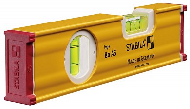 Уровень тип 80 AS 20 см STABILA 19565 изготовлен из усиленного ребрами жесткости прямоугольного алюминиевого профиля модели 80 AS. Одна вертикальная и одна горизонтальная пузырьковые камеры позволяют считывать показания в любом положении. При производстве пузырьковая камера и измерительные поверхности уровня идеально-точно выравниваются относительно друг друга, а затем пузырьковая камера прочно склеивается с внутренней поверхностью профиля. Точность измерения в нормальном составляет ± 0,5 мм/м, над головой ± 0,75 мм/м. Уровень с двумя измерительными поверхностями. Пластиковые колпачки надежно защищают профиль при ударах.