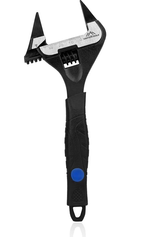 Разводной ключ VERTEXTOOLS 200 мм, с тонкими губками 5 мм, ширина захвата 38 мм, двухкомпонентная рукоятка, CR-V сталь с фосфатированным покрытием, закален до твердости 50HRC - предназначен для монтажа и демонтажа крепежных элементов с шестигранным профилем.