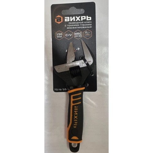 Разводной ключ с тонкими губками, фосфатированый, 250 мм, Вихрь