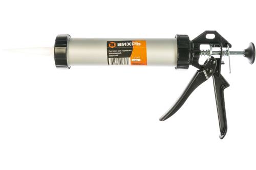 Алюминиевый закрытый пистолет для герметика Вихрь 73/3/6/2 используется при строительных и ремонтных работах.